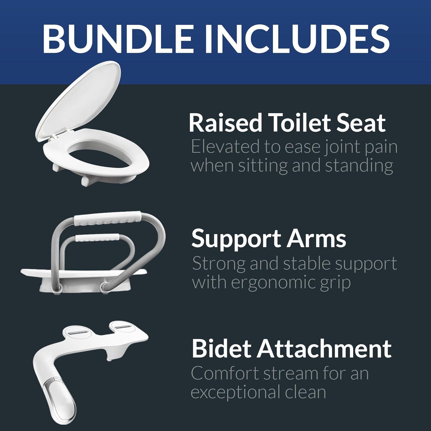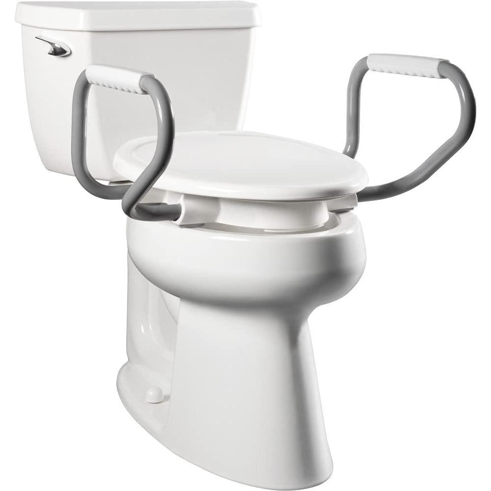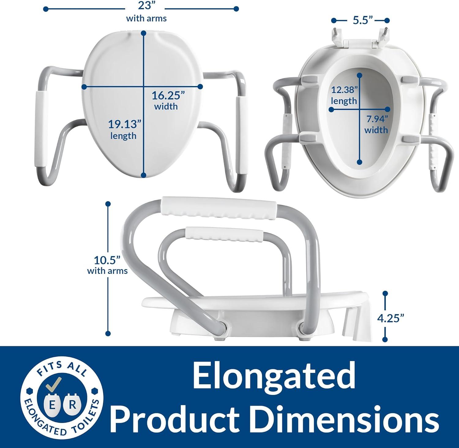 FITS ALL ELONGATED TOILETS: Compatible with Kohler, American Standard, TOTO, and more; seat measures 19.13″ L x 16.25″ W (23″ with arms) x 4.25″ H (10.5″ with arms)