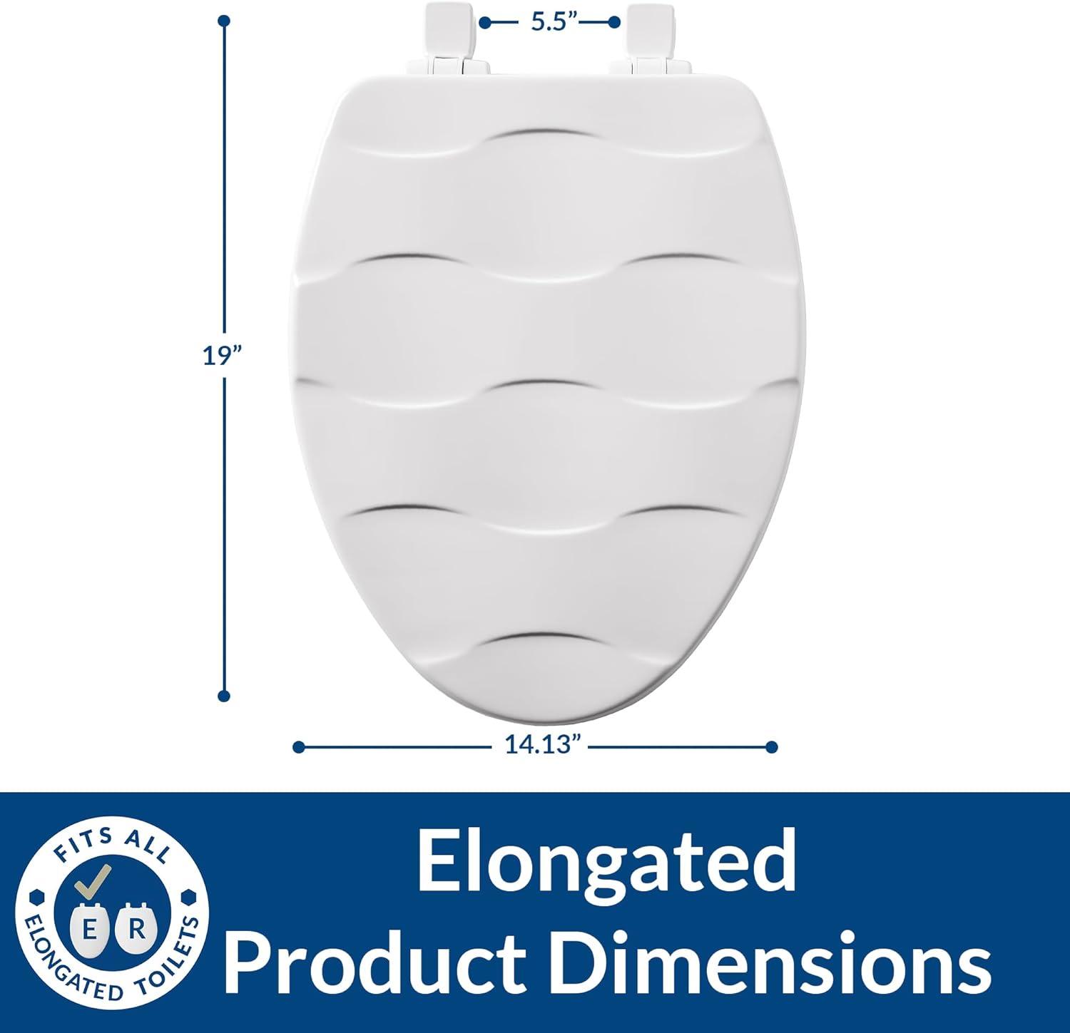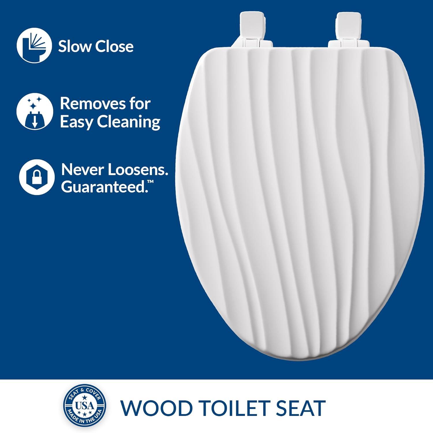 MAYFAIR 133SLOW 000 Sculptured Basket Weave Toilet Seat will Slow Close and Never Loosen, ELONGATED, Durable Enameled Wood, White