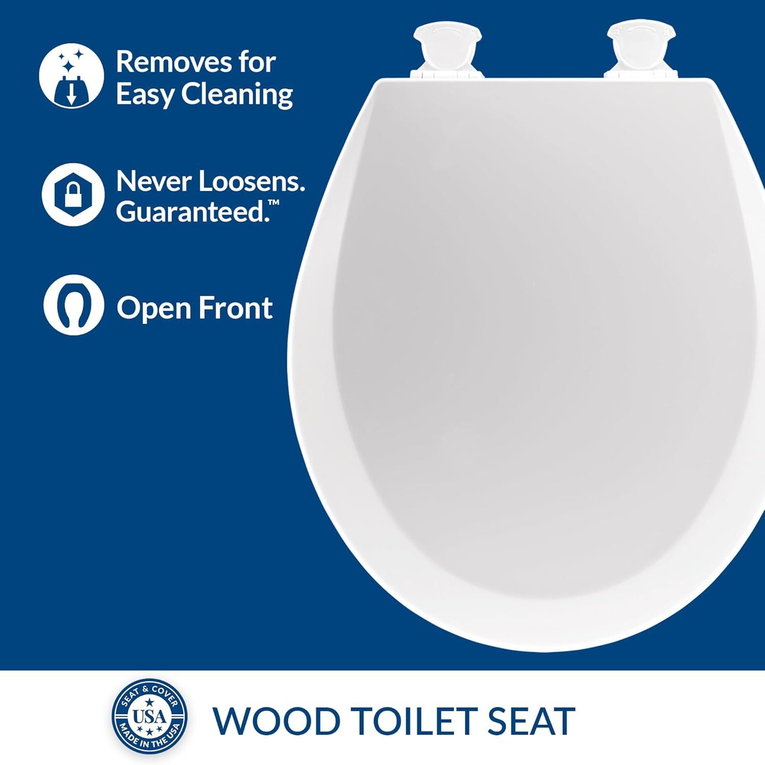 MAYFAIR 18440EC 000 Open Front Toilet Seat will Never Loosen and Easily Remove, ELONGATED, Durable Enameled Wood, White