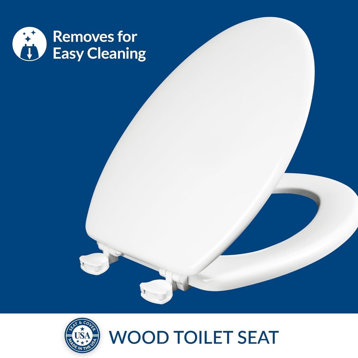 Mayfair Athens Toilet Seat, Easy Clean Hinges and Durable Wood Seat, Elongated, White(Elongated)