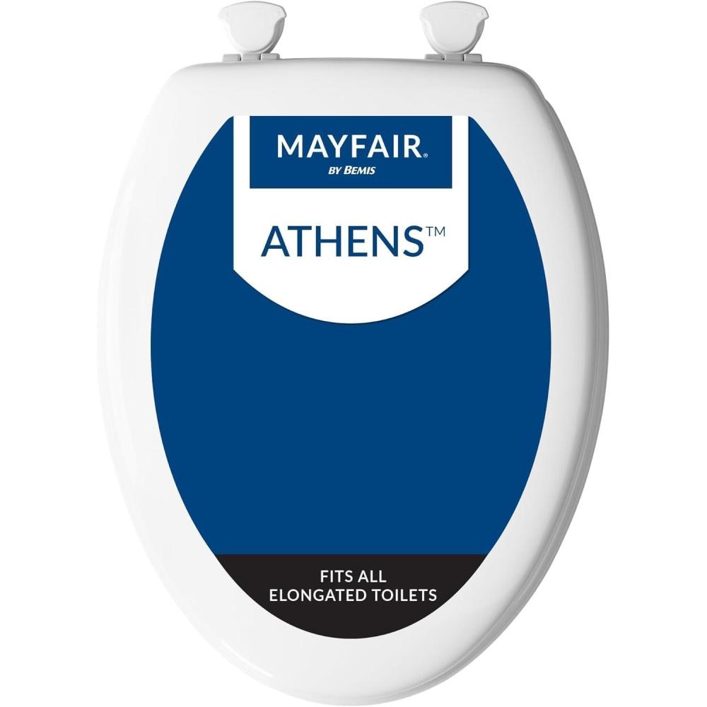 Upgrade your bathroom with the Mayfair Athens Elongated Toilet Seat, designed for convenience, durability, and a seamless fit. Whether you're replacing an old toilet seat or upgrading for comfort, this model delivers effortless maintenance and a secure installation. This toilet seat is an easy choice given all that it offers your bathroom experience. Easy-Clean & Change Hinges so you can quickly remove the seat for thorough cleaning and just as easily snap it back into place without hassle. A durable, scratch-resistant finish on high-gloss molded wood that resists chips and scratches, allowing you to maintain a fresh, clean look for years. A secure fit & hassle-free installation – designed to stay firmly in place, preventing annoying shifting while in use. Crafted with eco-friendly materials and sustainable wood sources in the USA, ensuring quality and reliability. The Athens Toilet Seat offers an upgrade to your bathroom with a seat that’s built for comfort, durability, and easy maintenance! Mayfair by Bemis – offering innovation for everyday life!